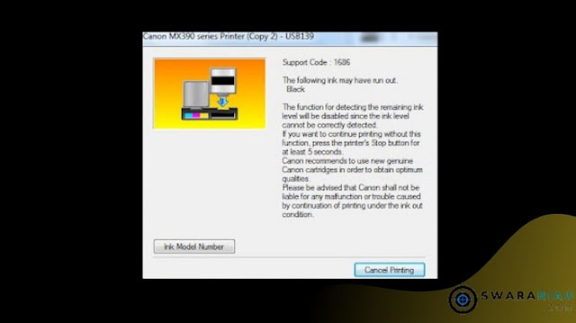 Swarariau.com, Tutorial Printer -- Pengguna Printer Canon MX 397 pasti pernah menemukan error 1686 yang terjadi saat mereka sedang menggunakan jenis printer ini dalam pekerjaan dan aktifitas mencetak dokumen lainnya.